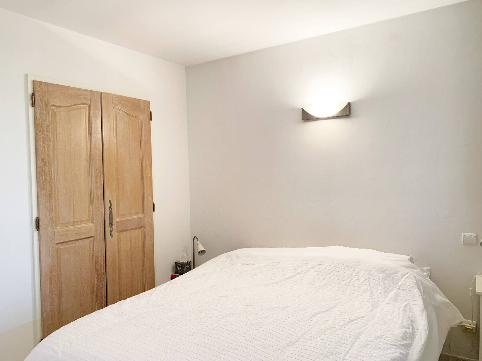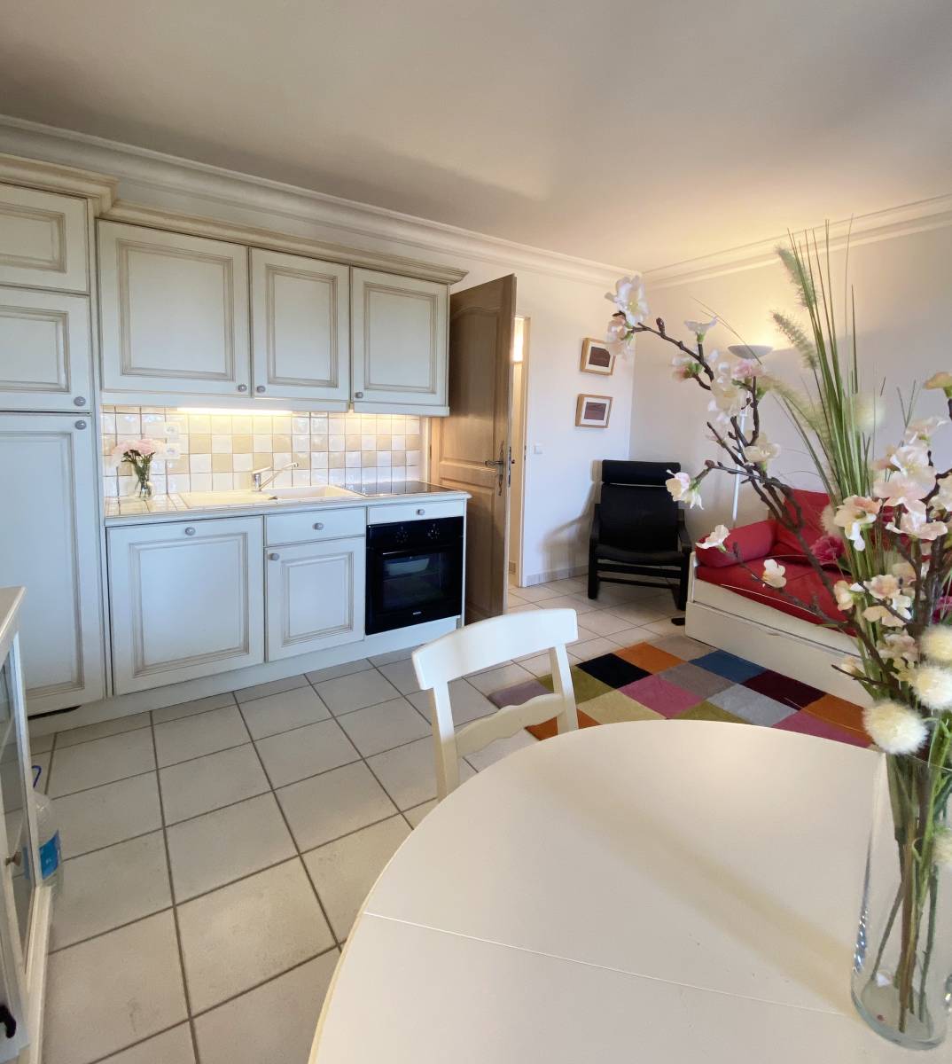 Il est composé d'une entrée avec espace bureau, une chambre avec placards, un toilette avec lave main, une salle de bains avec rangements, une cuisine entièrement équipée en chêne céruse de marque "TRANCHANT" donnant sur le séjour lumineux.
