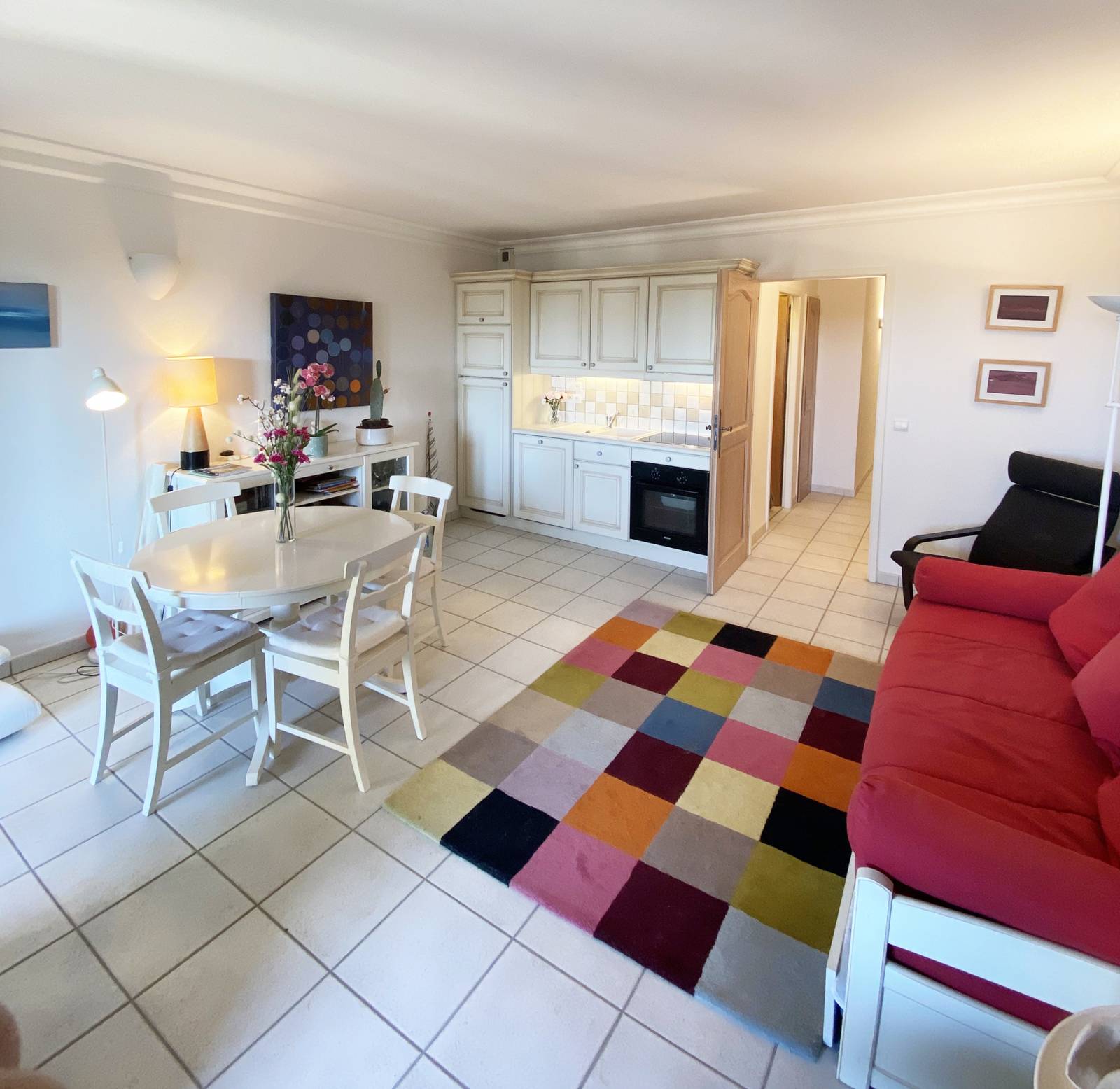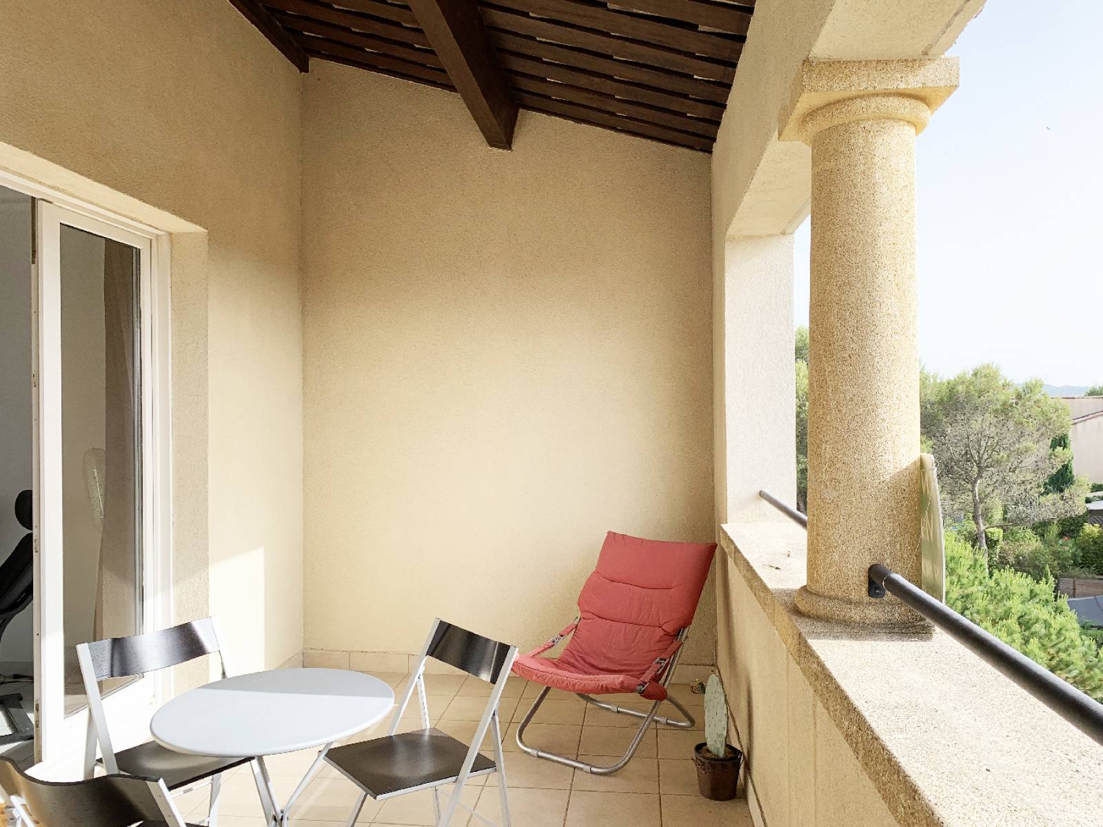 L'appartement bénéficie d'une exposition Est/Ouest, avec une belle terrasse ensoleillée accompagné d'une vue féerique sur le village ancien du Golf de pont Royal.