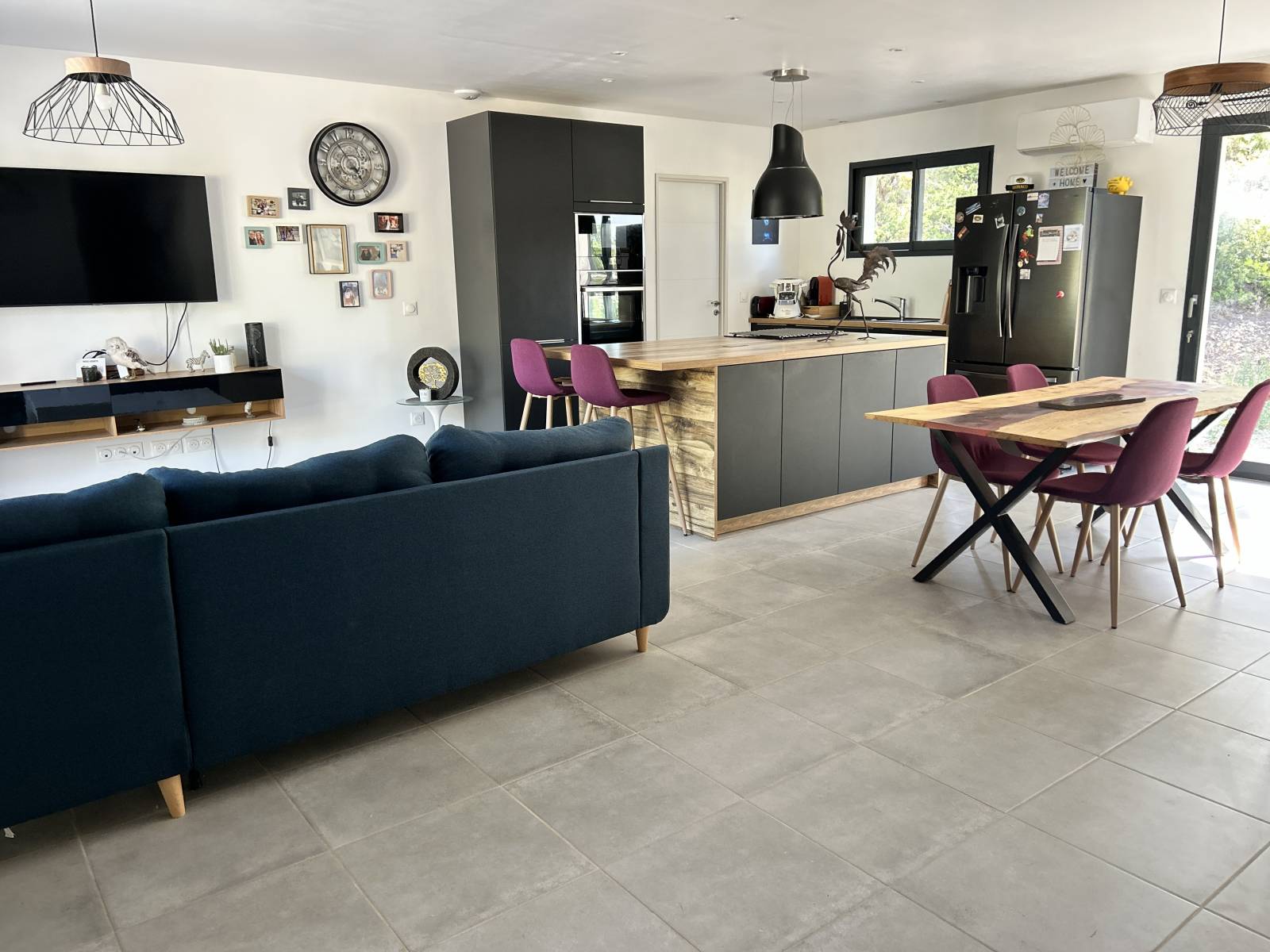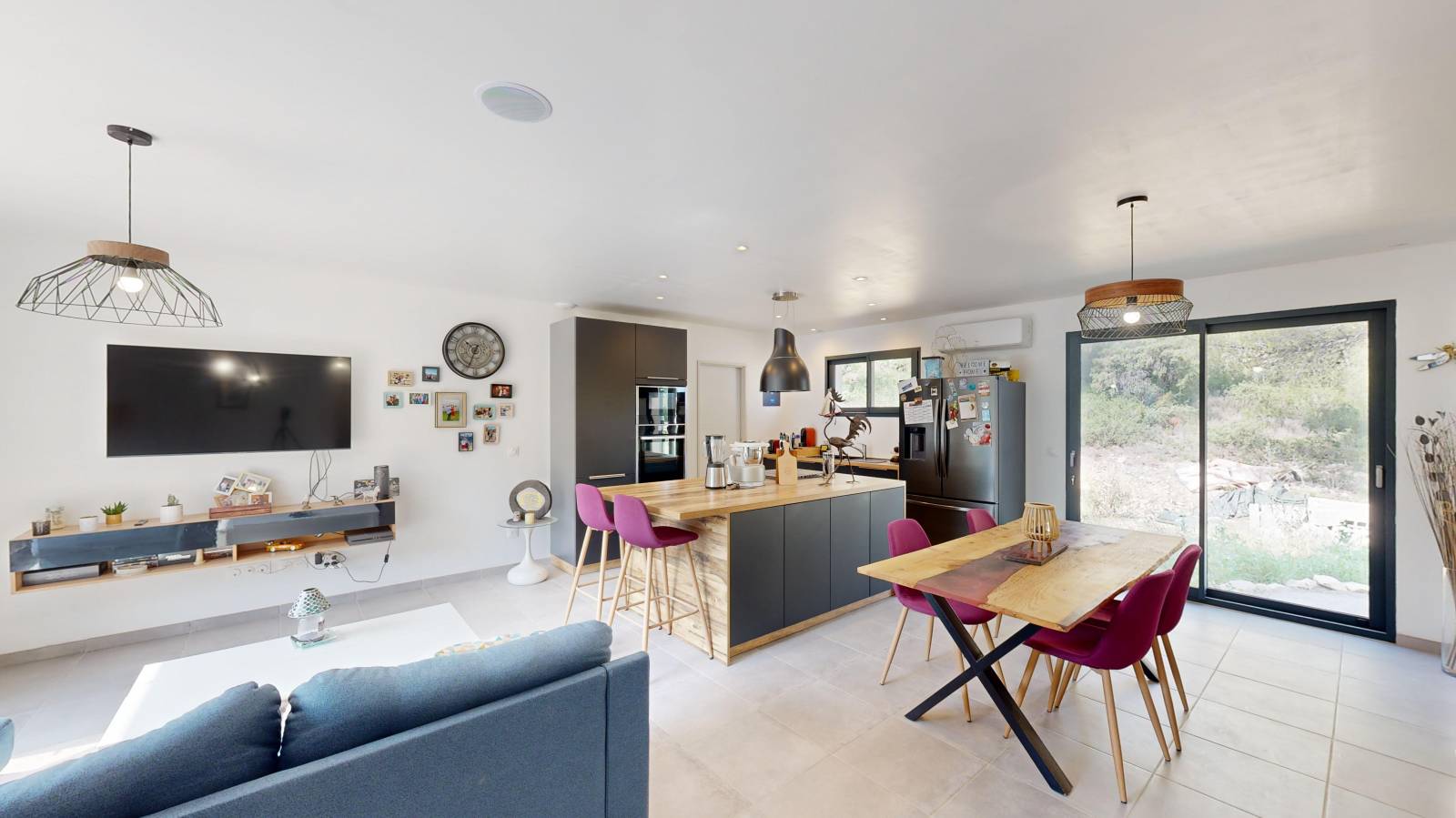 - Équipements : double vitrage, et rangements intégrés, climatisation individuelle dans toute la maison, pré-installation cheminée ou poele à bois/granules, ballon d'eau chaude thermodynamique