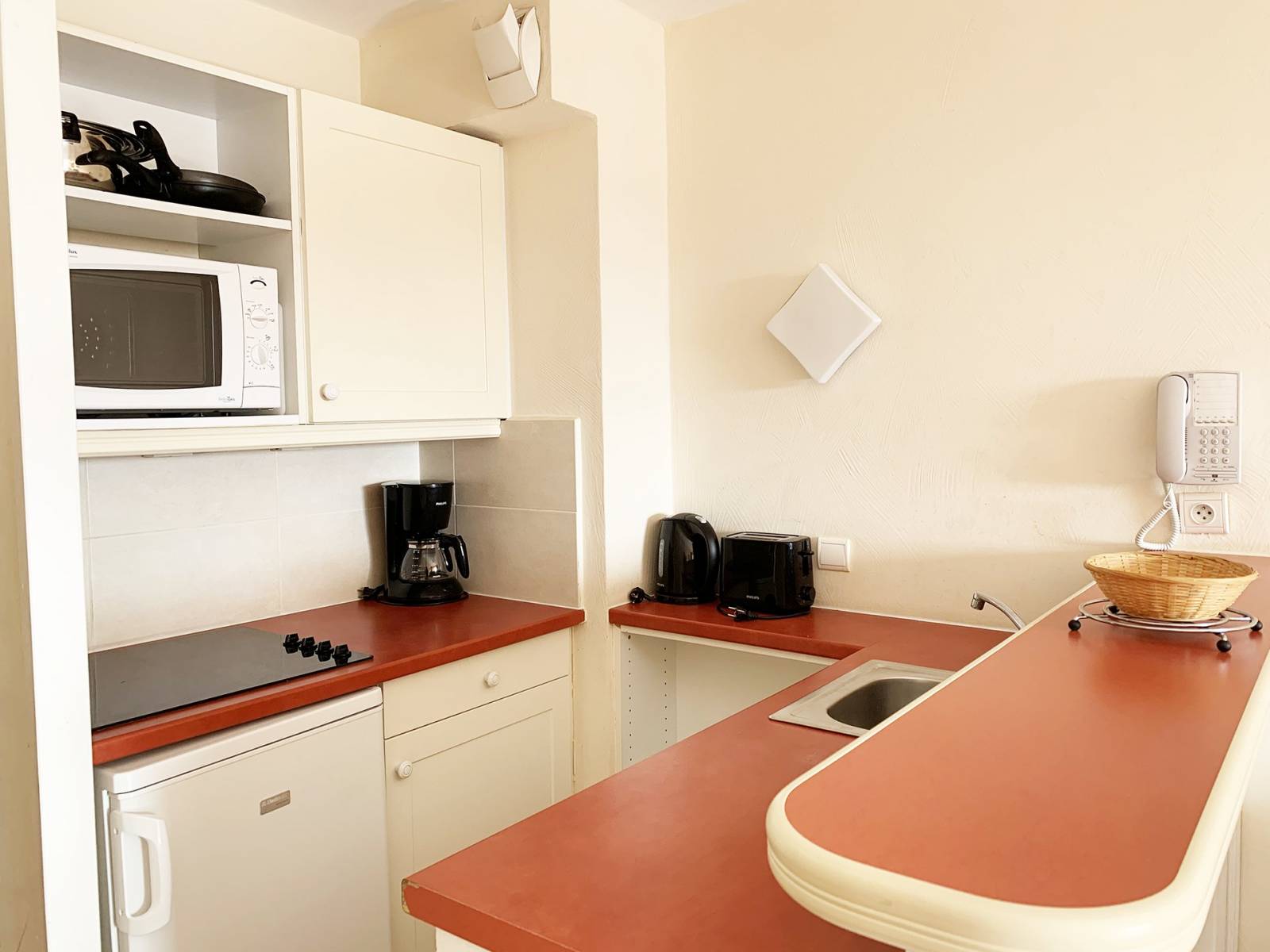 L'appartement est constitué d'une jolie pièce de vie, avec une cuisine aménagée et équipée ouverte sur salon/séjour donnant accès à une loggia avec vue imprenable sur le Domaine.