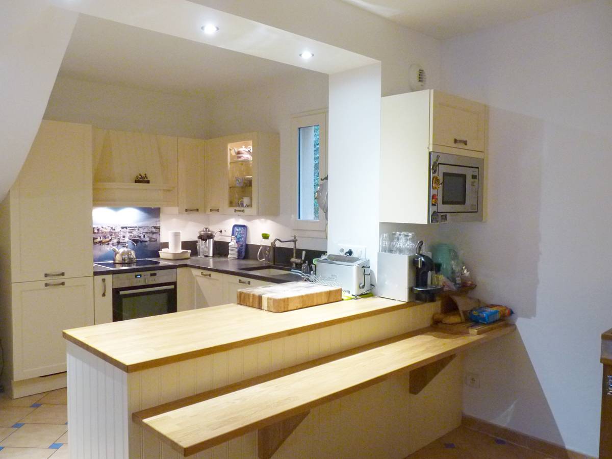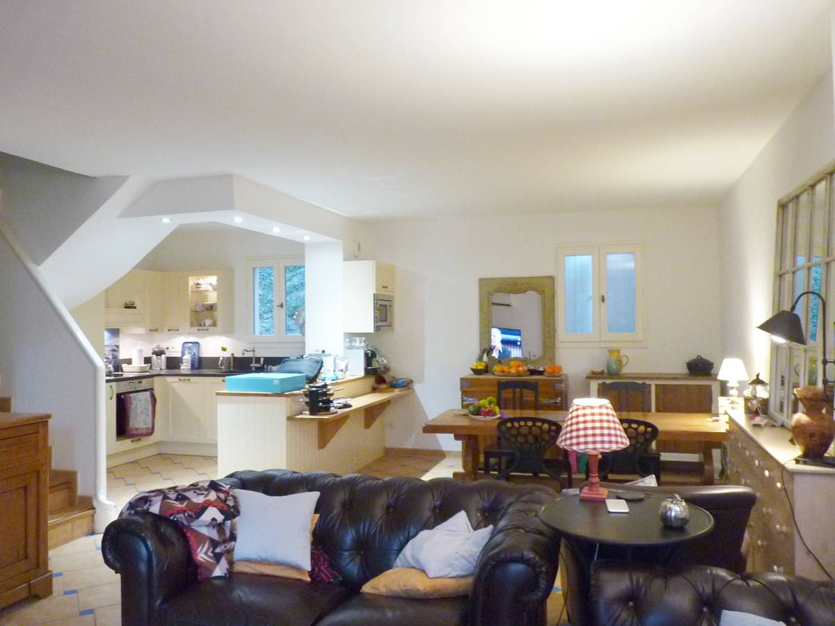 Au rez de chaussée, se trouvent la cuisine entièrement équipée et aménagée, ouverte sur la salle à manger et le salon.