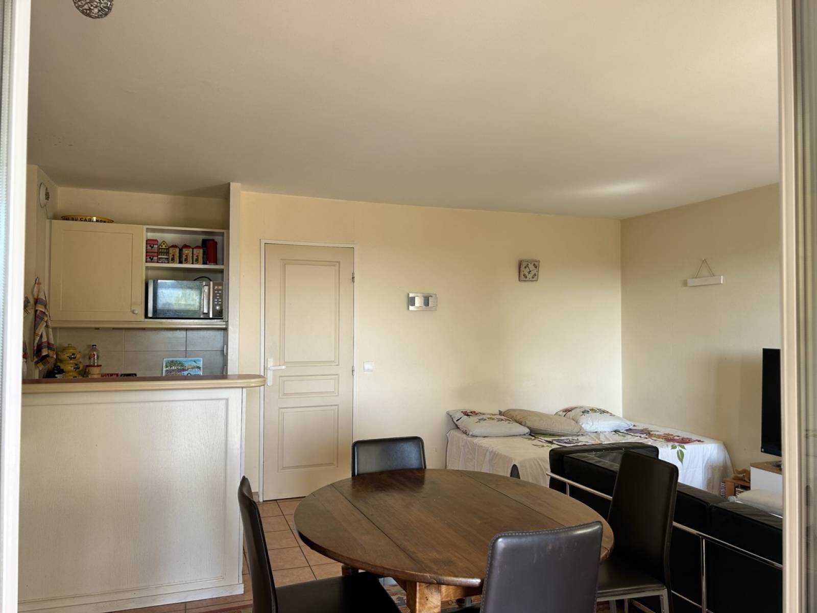 Séjour spacieux avec espace cuisine donnant vers la terrasse
